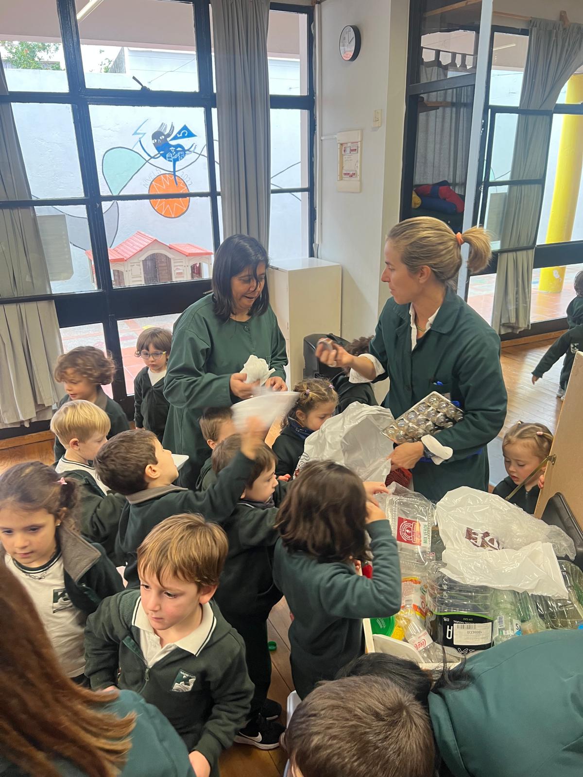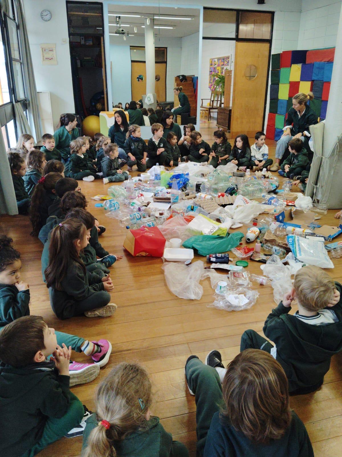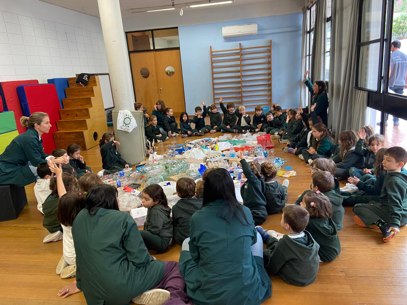 Dialogamos , intercambiamos ideas, clasificamos los desechos y los reutilizamos en una intervención plástica. Juntos, continuamos trabajando para cuidar nuestro planeta.