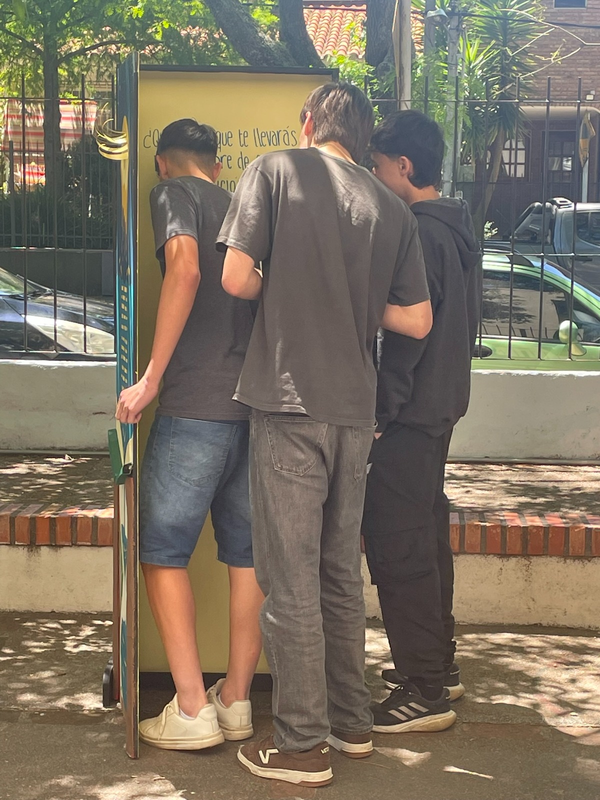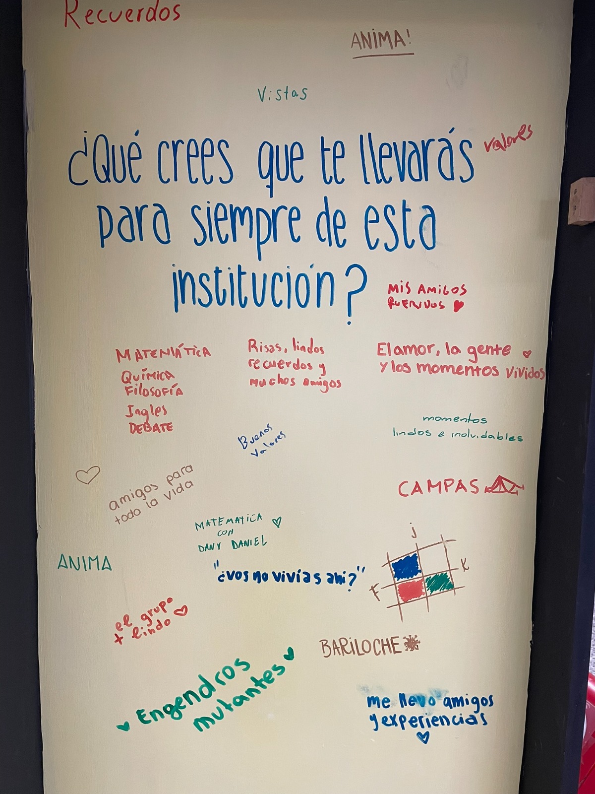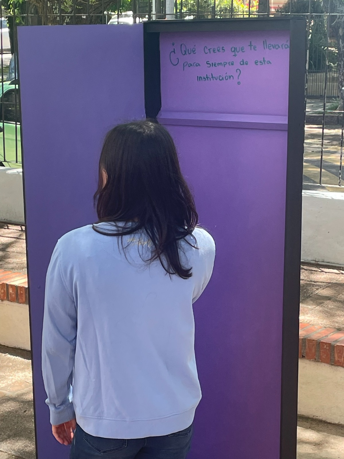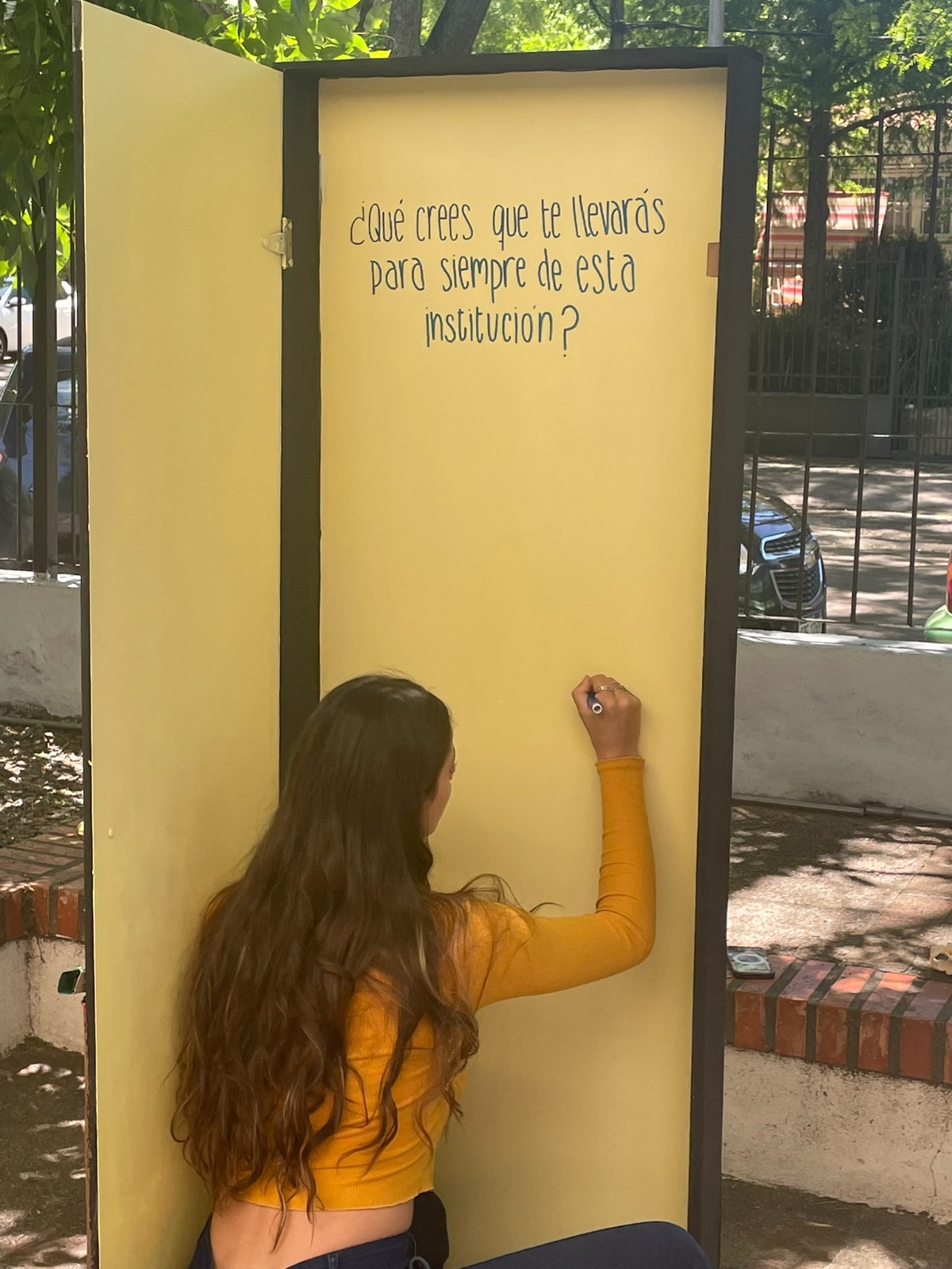 Estudiantes de 3ro EMS del trayecto Creativo- Artístico cierran su trabajo en Comunicación Visual y Diseño con una performance que invita tanto a los compañeros que egresan como a aquellos que siguen en tránsito a preguntarse por su pasaje por el colegio y valorar los aprendizajes, las anécdotas y los vínculos que se llevan de él.